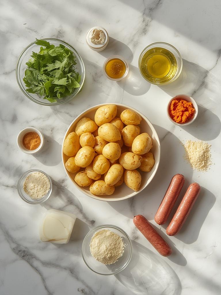 1. Prep Ingredients: Chop potatoes into 1-inch cubes and slice smoked sausage into coins.