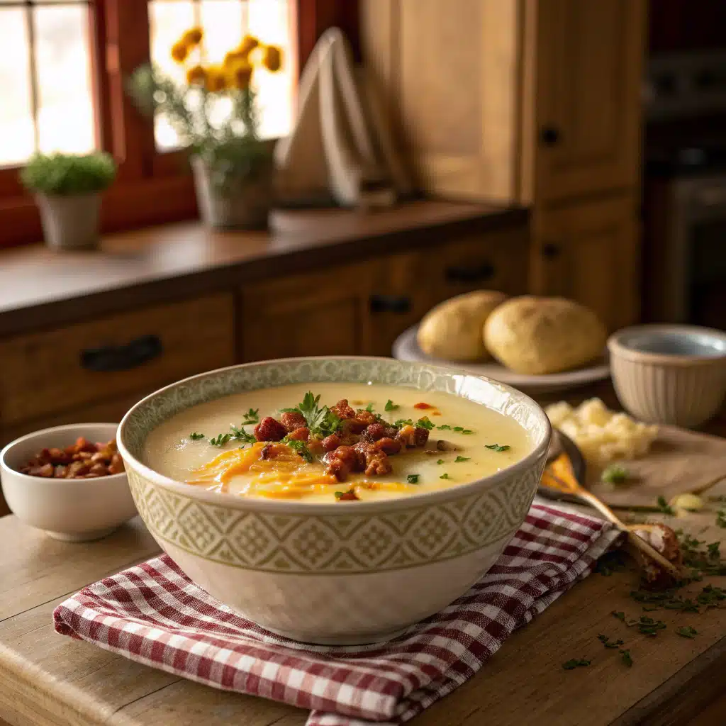 You can make this recipe vegetarian by omitting the bacon—though let’s be honest, those crispy bacon bits are the highlight for many. The rich, creamy base combined with the saltiness of bacon puts this one right up there with the best potato soup recipes I’ve ever taught in my barn kitchen.